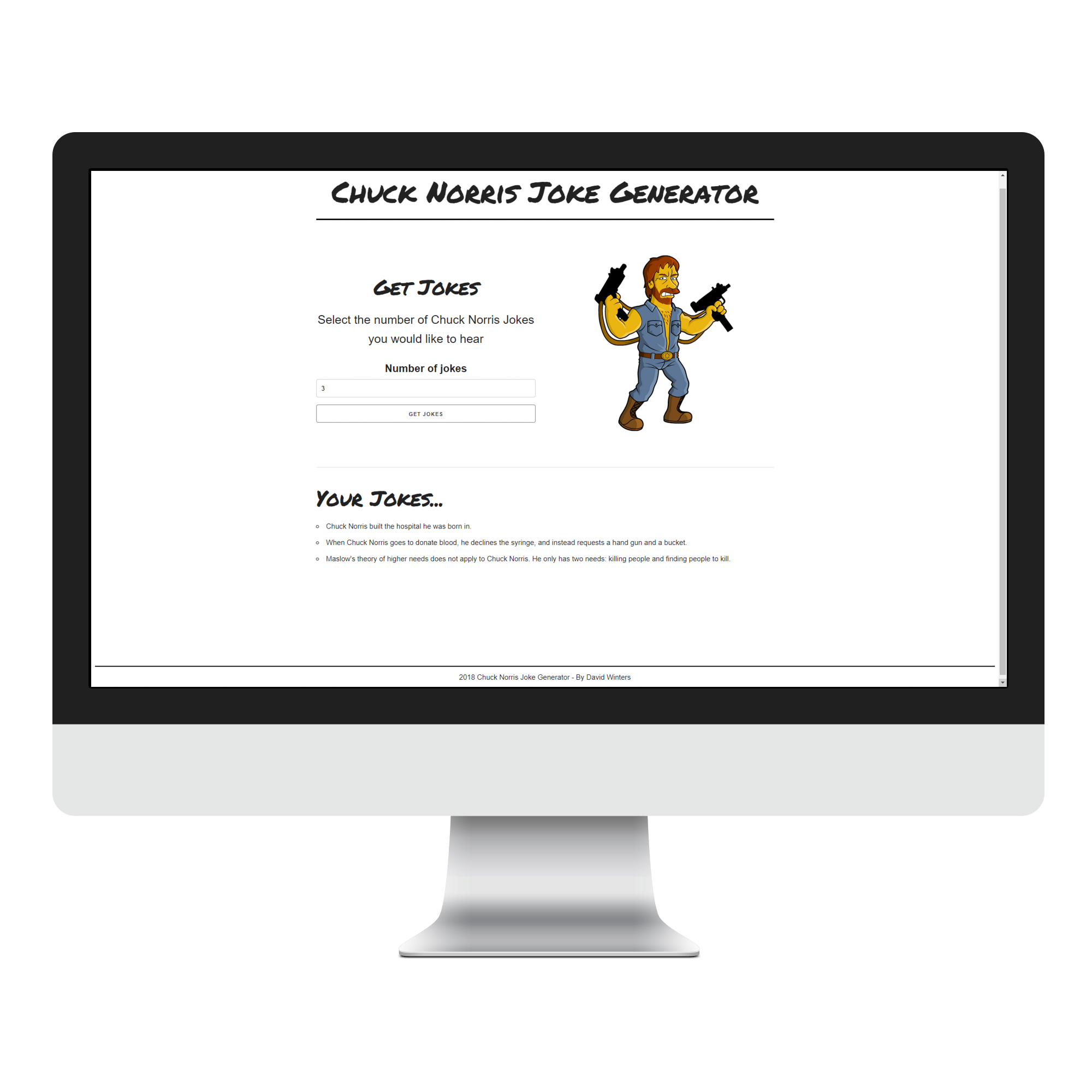 Select any amount of Chuck Norris jokes you wanna hear, and laugh yourself silly!