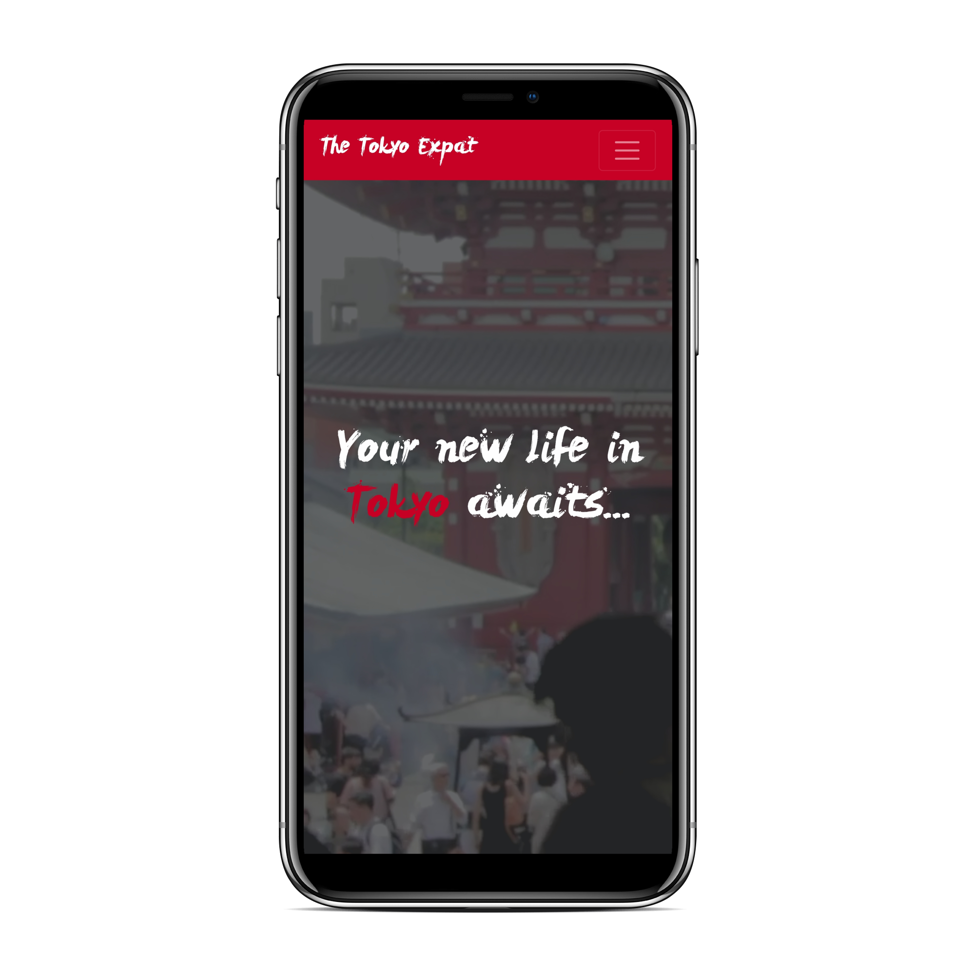 Mockup info site aimed at helping expats find housing, jobs, and Japanese language schools in Tokyo.